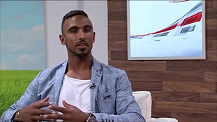 Leon talking on TV about his ambassador role for the charity Young Epilepsy.